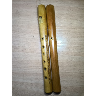 Русский народный духовой музыкальный инструмент. Изготовлен по традиционной технологии на Юге Сибири полностью из дерева. Материал:сибирская береза - прочное, тяжёлое дерево с красивой текстурой золотистых, желтых и светло-коричневых оттенков, пропитан натуральным льняным маслом, как и делалось в старину с дудочками и деревянной посудой. Блок сделан из сибирского кедра. Он не пропитывается маслом, что позволяет впитывать лишнюю влагу при игре не забивая свисток. Сама форма корпуса этнографическая: без носика и с углублениями под пальцы. Что весьма удобно, особенно для начинающих. Выполнен дополнительно орнамент по бокам. Снаружи покрыты спиртовым раствором натурального шеллака.