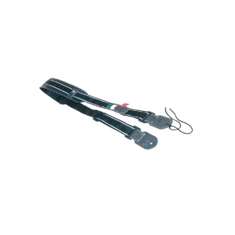 - Имеет регулятор длины, карман для медиаторов, усиленную наплечную лямку, прорезь с одной и шнур с другой стороны для крепления к гитаре