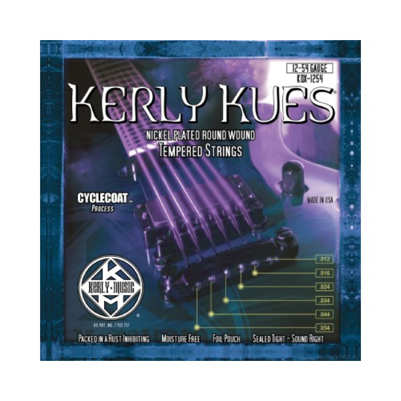 Kerly Music Corp - бутиковая компания-производитель струн для электро-, бас-, классических и акустических гитар. Витые струны Kerly производятся по традиционной в целом технологии за счет намотки проволоки на сердечник. На этом этапе достижение более высокого качества достигается за счет использования более качественных металлов и сердечника шестигранного сечения, что предотвращает соскальзывание обмотки, ее неплотное прилегание к сердечнику (это может возникать в случае проволоки сердечника круглого сечения и может приводить к тому, что сердечник “болтается” в обмотке, в целом это ухудшает качество струны). Так же повышению качества способствует применение высокоточных станков с компьютерным мониторингом плотности и равномерности обмотки. Запатентованный процесс закалки подвергает струны перепадам температуры примерно от -200 до 180 градусов Цельсия в течение 24-48 часов. В проволоке для струн зачастую присутствуют микротрещины, в них попадает пот, загрязнения, а это вызывает звуковые потери, приводит к коррозии и способствуют преждевременному разрушению, обрыву струны. Процесс нагрева-охлаждения приводит к расширению-сжатию металла, в результате которого микротрещины, которые делают струну тусклой по звуку и ломкой, закрываются, металл становится более однородным, улучшается его молекулярная структура. Такая обработка - с использованием жидкого азота для обдува струн экстремально холодным потоком воздуха после воздействия интенсивного жара на протяжении долгого периода времени - обеспечивает струны дополнительными свойствами, такими как прочность, четкий тон, увеличенная долговечность и устойчивость к коррозии. Их надо меньше подстраивать, так как они более стабильны и лучше держат строй, а более гладкая по ощущениям поверхность сочетается с замечательной гибкостью и эластичностью при исполнении подтяжек и бендов.