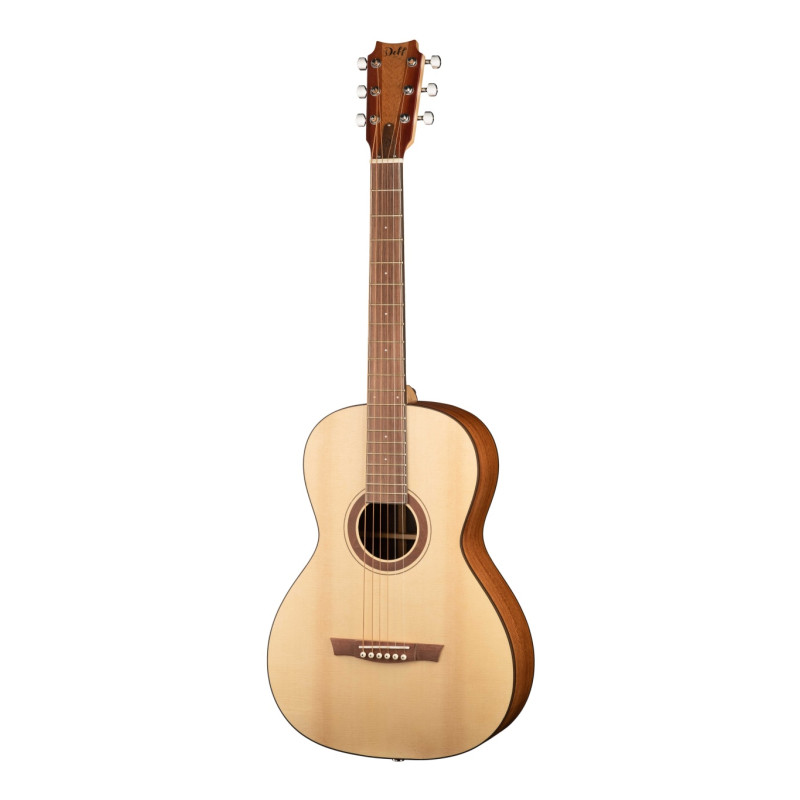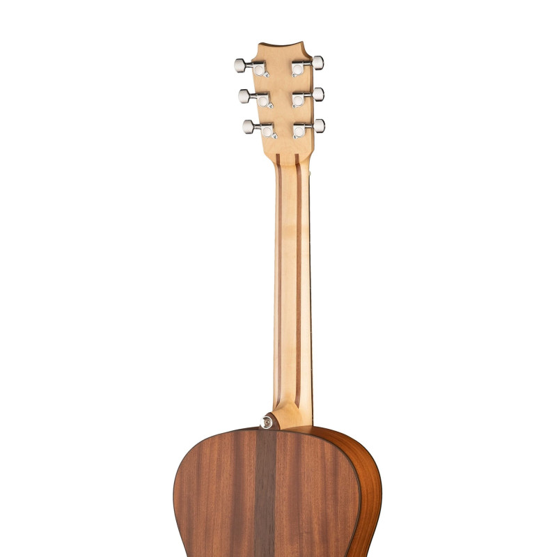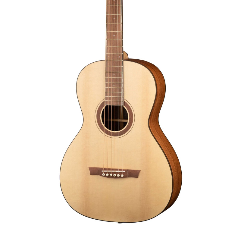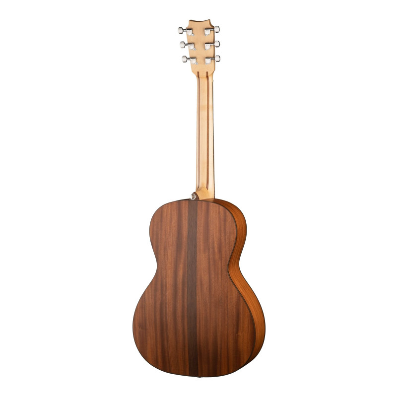 Форма корпуса Парлор, фолк. Данная модель с корпусом из массива красного дерева, верхняя дека из массива ели АА класса. Порожки кость, накладка и подставка из палисандра. Инструмент поставляется со струнами Elixir.