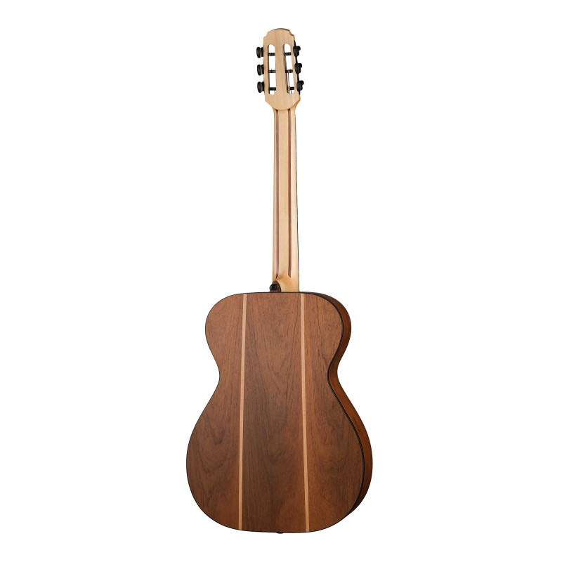 Гитара с небольшим корпусом, на таких инструментах играет огромное кол-во фингерстайл гитаристов, включая Томми Эммануэля. Приятный и удобный для игры корпус, но всё ещё достаточный по размеру, чтобы получить хороший звук. Отличный выбор для пальцевой игры. Эта модель с корпусом из массива палисандра и верхней декой из массива ели. Накладка из чёрного дерева. Премиум модель.