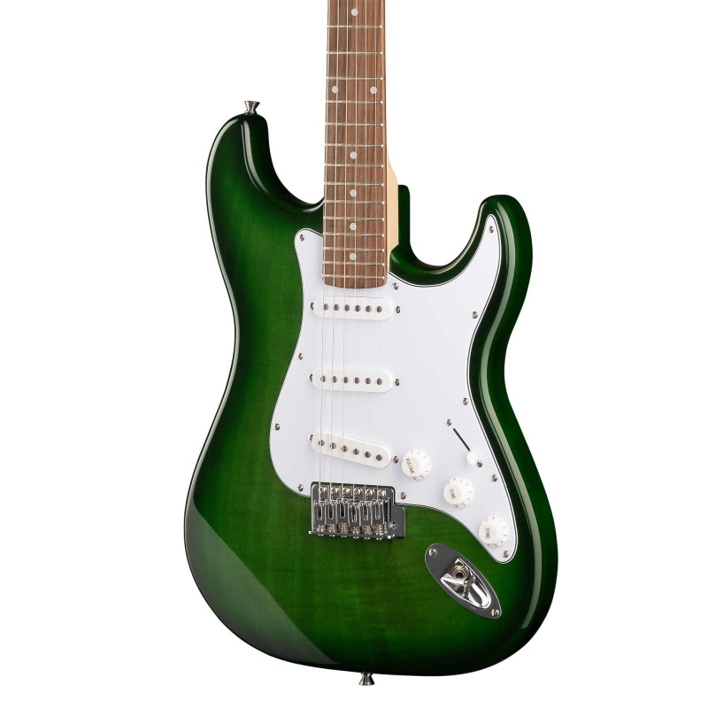 Шестиструнная электрогитара зелёного цвета. Корпус гитары типа «Stratocaster» изготовлен из древесины твердых пород и имеет защитную пластину белого цвета. Гриф изготовлен из клена, накладка грифа из палисандра.
