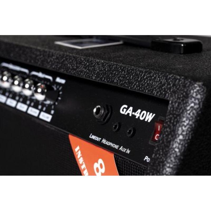 GA-40W Black - это миниатюрный комбоусилитель для электрогитары, отличающийся доступной стоимостью, возможностью удобной транспортировки, а также приятным и аутентичным звучанием. Модель прекрасно подойдет для использования в домашних или полевых условиях, предлагая набор самых необходимых функций для обучения, репетиций и практики при любых условиях и в любое время суток.