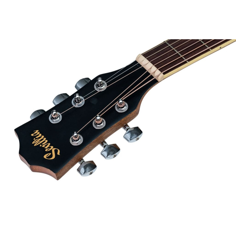 Серия акустических гитар Sevillia - это гармония между ценой и качеством. Инструменты произведены с сохранением высоких стандартов качества. Линейка моделей включает в себя разные оттенки инструмента. Идеально подходят для начинающих музыкантов! Размер грифа - 4,4 см на первом ладу, 5,5 см на последнем ладу.