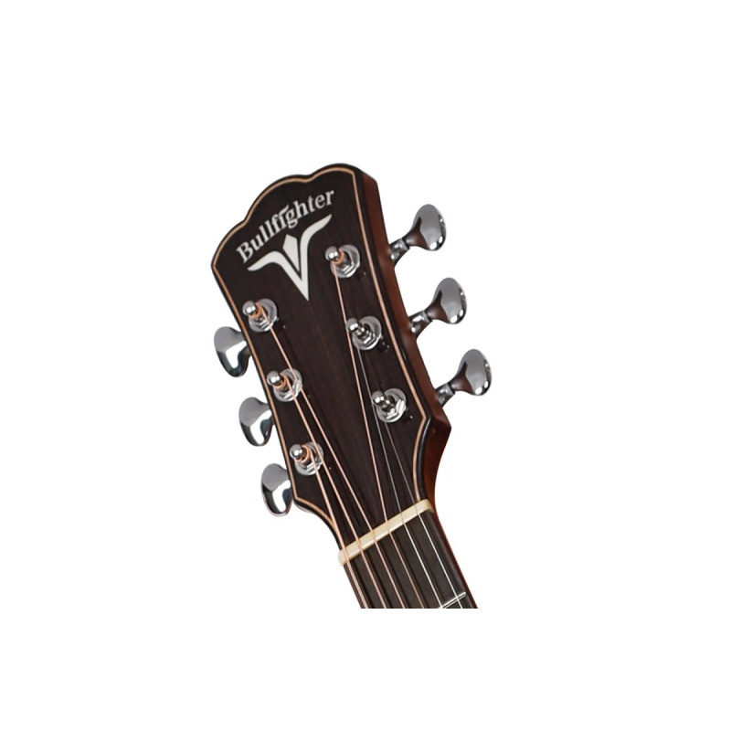Акустическая гитара BULLFIGHTER D2D — это современный инструмент, построенный по канонам легендарной формы «дредноут», но дополненный практичным вырезом (cutaway). Эта особенность обеспечивает легкий доступ к самым верхним ладам, значительно расширяя исполнительские возможности гитариста.