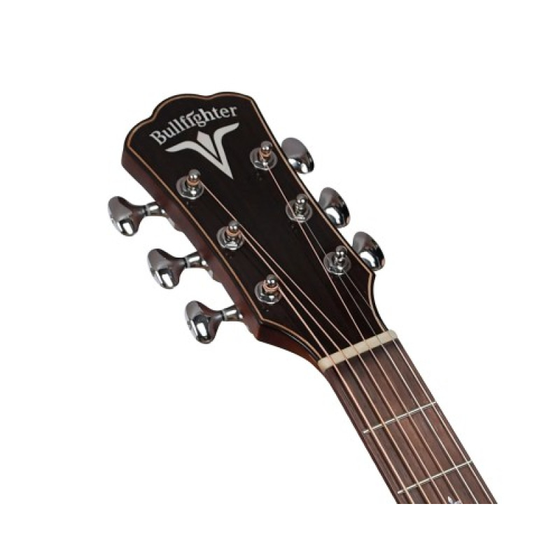 Акустическая гитара BULLFIGHTER D3A — это инструмент для искушенных музыкантов, ищущих уникальное звучание и безупречный внешний вид. Модель сочетает в себе популярную форму «Grand Auditorium» с вырезом, которая предлагает универсальность и сбалансированный звук, а также эргономичный скос на корпусе под правую руку для максимального комфорта во время игры.