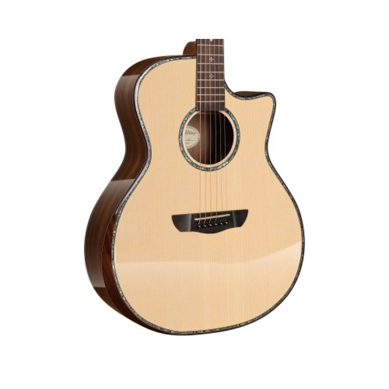 Модель имеет популярную форму которая «Grand Auditorium» с вырезом, которая предлагает универсальность и сбалансированный звук. Эргономичный скос на корпусе под правую руку из палисандра обеспечивает максимальный комфорт во время игры.