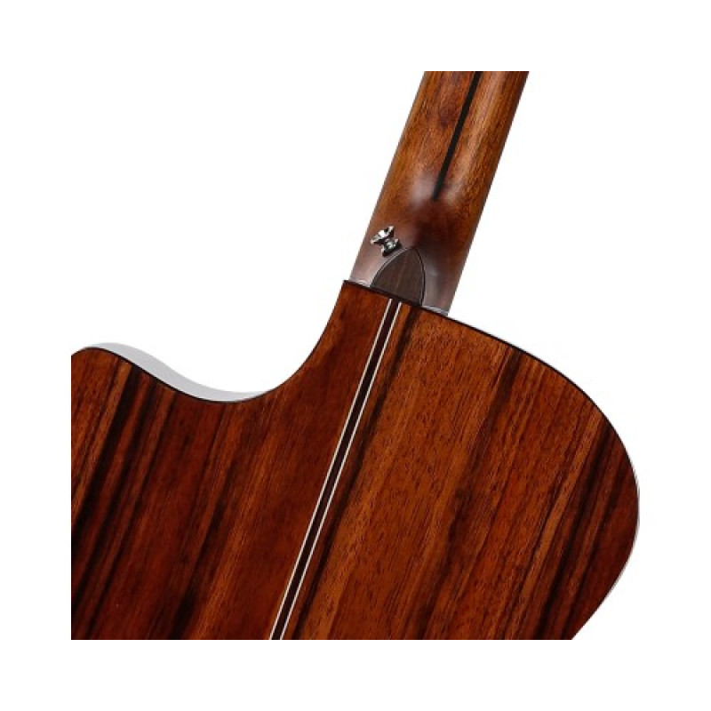 Верхняя дека из массива ели Энгельмана (Engelmann Spruce Solid) отвечает за богатый, детализированный звук с исключительной отзывчивостью и широким динамическим диапазоном. Эта древесина известна своим зрелым, сбалансированным тембром с обилием обертонов.