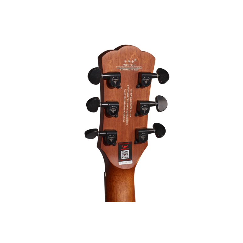 Надежная черная литая колковая механика закрытого типа с логотипом BULLFIGHTER обеспечивает точную и стабильную настройку. Компенсирующие порожки из искусственного синтетического кости способствуют точному строю и улучшенному резонансу, а две черные пуговицы позволяют удобно использовать ремень.
