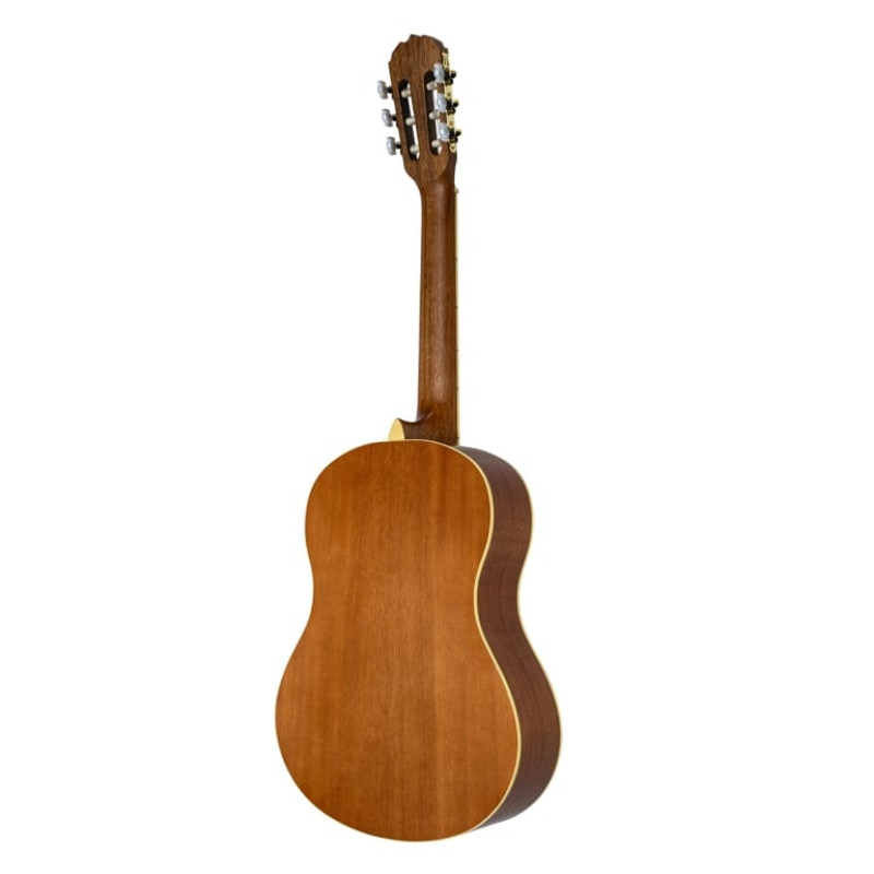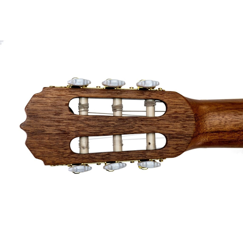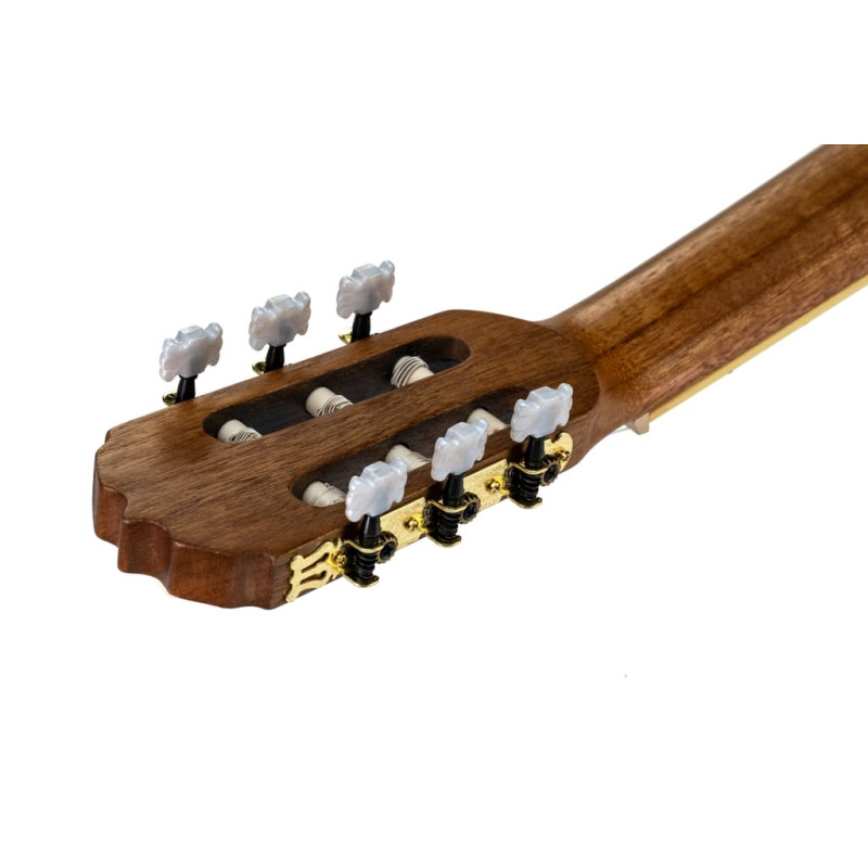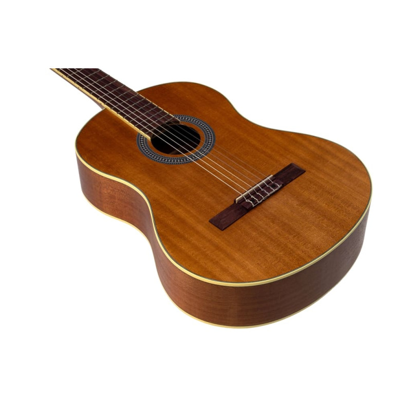 Нейлоновые струны, установленные на комфортной для игры высоте, делают гитару удобной даже для самых юных исполнителей. Надежная колковая механика обеспечивает мягкий и точный ход, легкость при настройке, а главное – хорошо держит строй. Размер грифа - 5,1 см на первом ладу, 6,4 см на последнем ладу.
