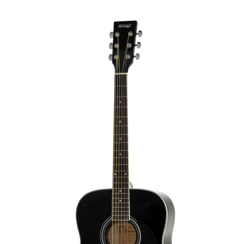 LF-4111-BK Акустическая 6-струнная гитара 41". Верхняя дека - ламинат ели, задняя дека и обечайки - ламинат липы, гриф - катальпа, накладка грифа - палисандр, бридж - палисандр, колковая механика - хромированная, окантовка - пятислойный пластик, цвет - черный. HOMAGE