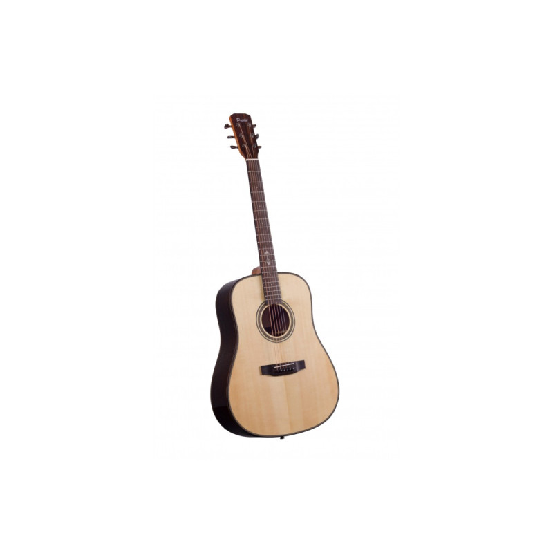 Акустическая гитара с формой корпуса Dreadnought и цельной верхней декой из ели. Корпус изготавливается из палисандра, что в сочетании с глубоким корпусом предлагают четкую атаку с собранными низкими частотами.