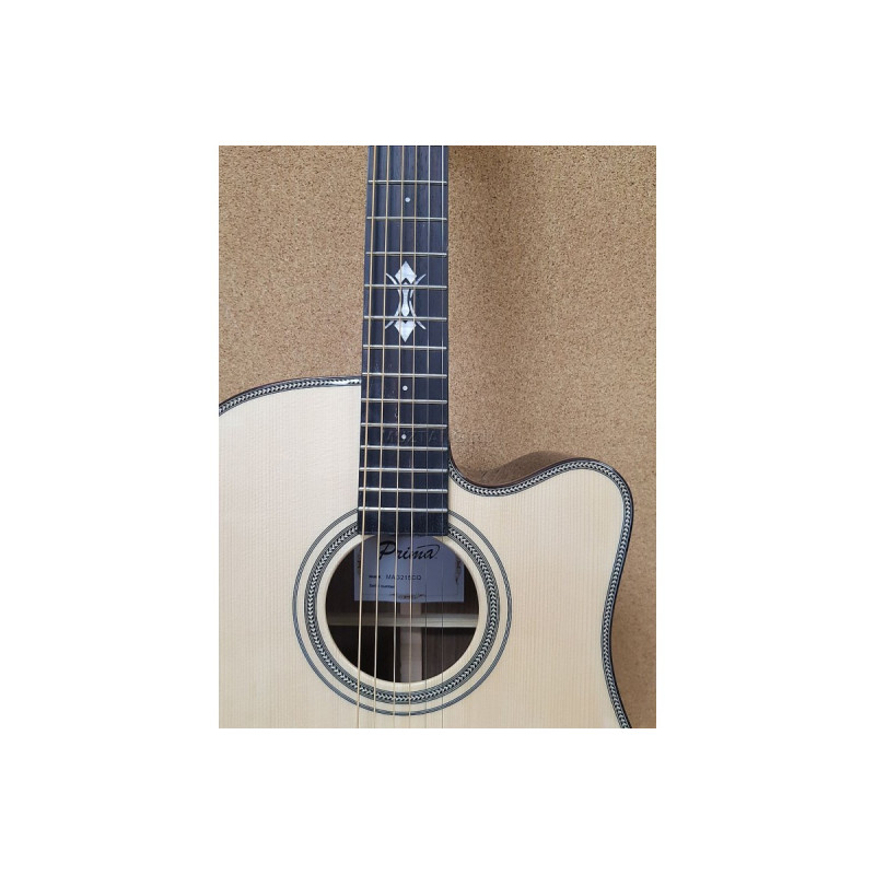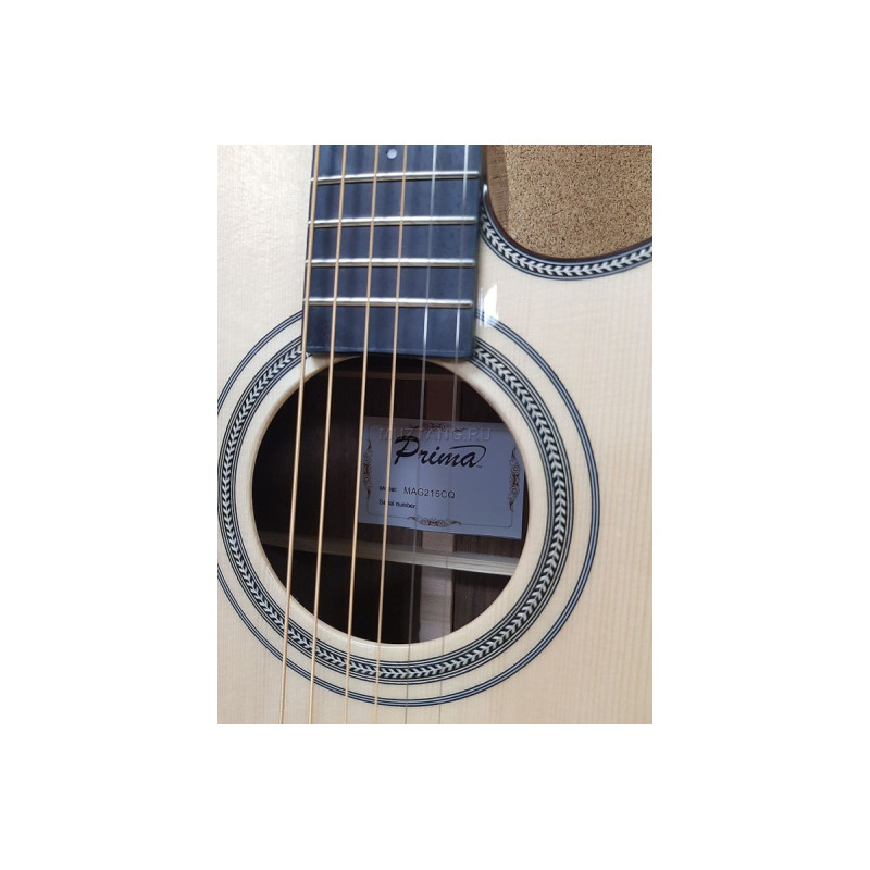 PRIMA MAG215CQ гитара электроакустическая Форма корпуса с вырезом - Dreadnought Материал верхней деки - массив ель Материал корпуса - ламинат красное дерево (mahogany) Материал грифа - красное дерево Накладка на гриф - палисандр Струнодержатель - палисандр Интарсия по корпусу Ширина грифа в области верхнего порожка - 42,9 мм Длина мензуры - 650 мм Электроника - FISHMAN Presys Покрытие глянцевый лак Цвет - натуральный