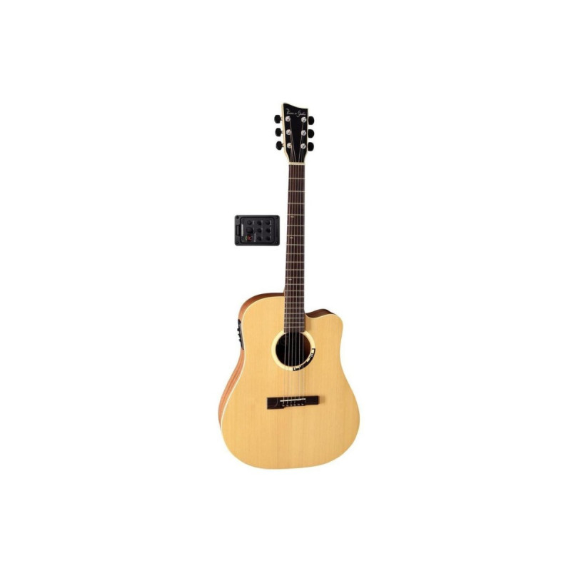 VGS GB-12CE Grand Bayou Гитара электроакустическая. Концепция создания марки VGS „Visions in Guitars“ олицетворяет собой надежность испытанных технологий, традиционные методы производства, объединенные с инновациями и передовым дизайном. Чтобы оптимизировать качество звука, комфорт и пригодность инструментов для игры, мы очень тщательно выбираем материалы и следим за аккуратностью работы. Хороший звук вовсе не должен быть дорогим. VGS GB-12CE Grand Bayou — электроакустика дредноут. Топ из цельного кедра. Обечайки и нижняя дека из красного дерева. Выпуклая задняя дека без брасов. Кедровый гриф, накладка струнодержатель из палисандра. Мензура 650 мм. Ширина грифа в области верхнего порожка 44 мм. Двухсторонний анкер. Нижний порожек и инкрустация струнодержателя из материала Bonoid. Деревянная розетка.Хромированная колковая механика. Окантовка корпуса и головы грифа из клена.