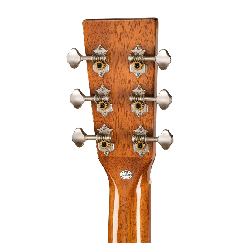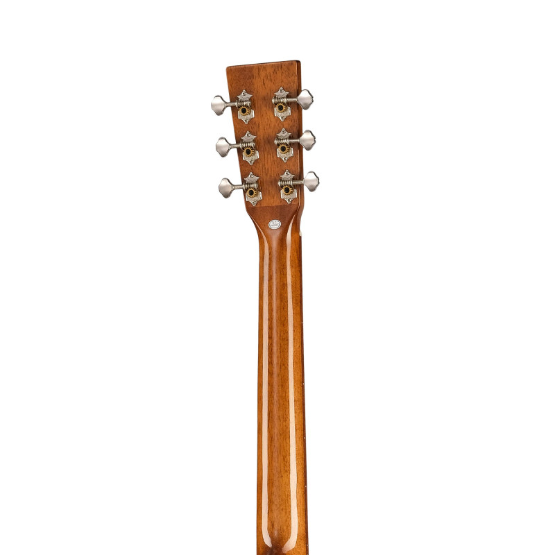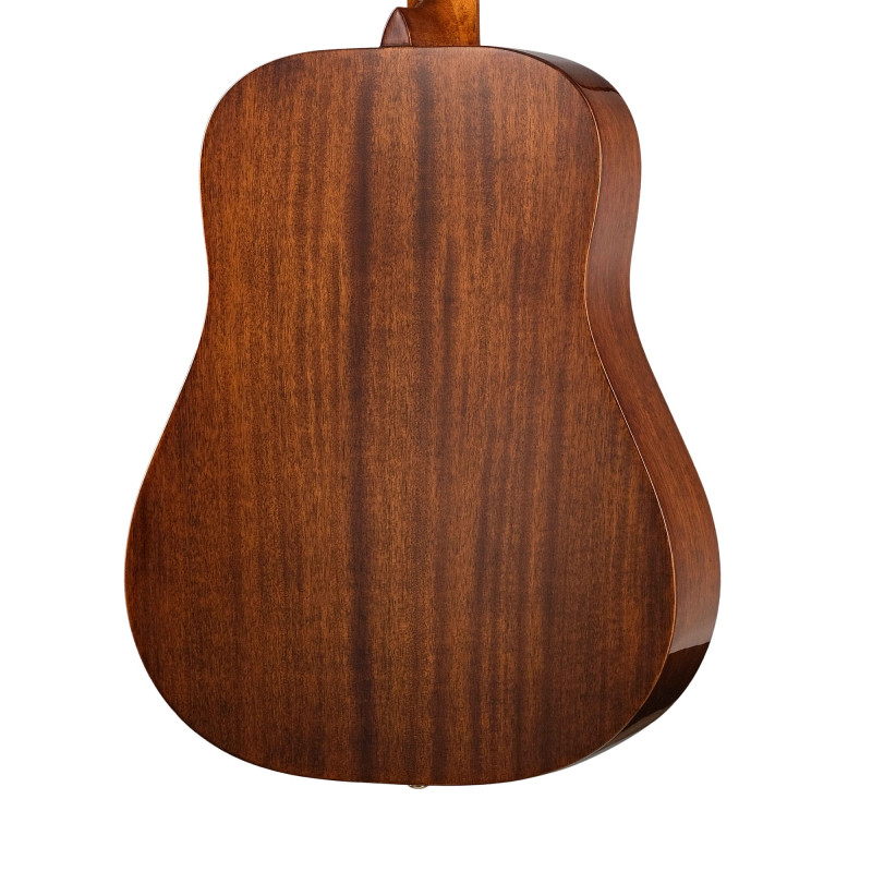 Форма дредноута, верхняя дека, задняя дека и обечайки из массива красного дерева превосходного качества, обеспечивающего теплый, яркий, динамичный и точный звук. Окантовка грифа из красного дерева и шпон палисандра на головке грифа для великолепного внешнего вида. Костяной порожек шириной 43 мм и традиционный бридж из палисандра для более точного звука, чистой атаки и хорошей динамики нижних частот!