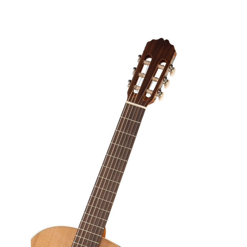 Благодаря верхней деке из массива кедра с типично испанским звучанием, задней деке из африканского красного дерева и матовой отделке гитара Prodipe Guitars Student обеспечивает мощный, теплый, прямой звук и великолепный комфорт при игре.