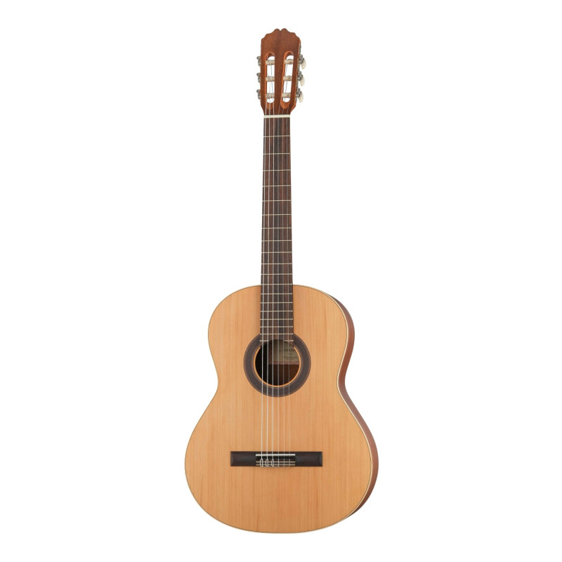Благодаря верхней деке из массива кедра с типично испанским звучанием, задней деке из африканского красного дерева и матовой отделке гитара Prodipe Guitars Student обеспечивает мощный, теплый, прямой звук и великолепный комфорт при игре.