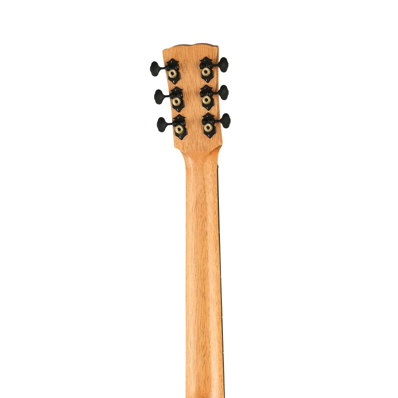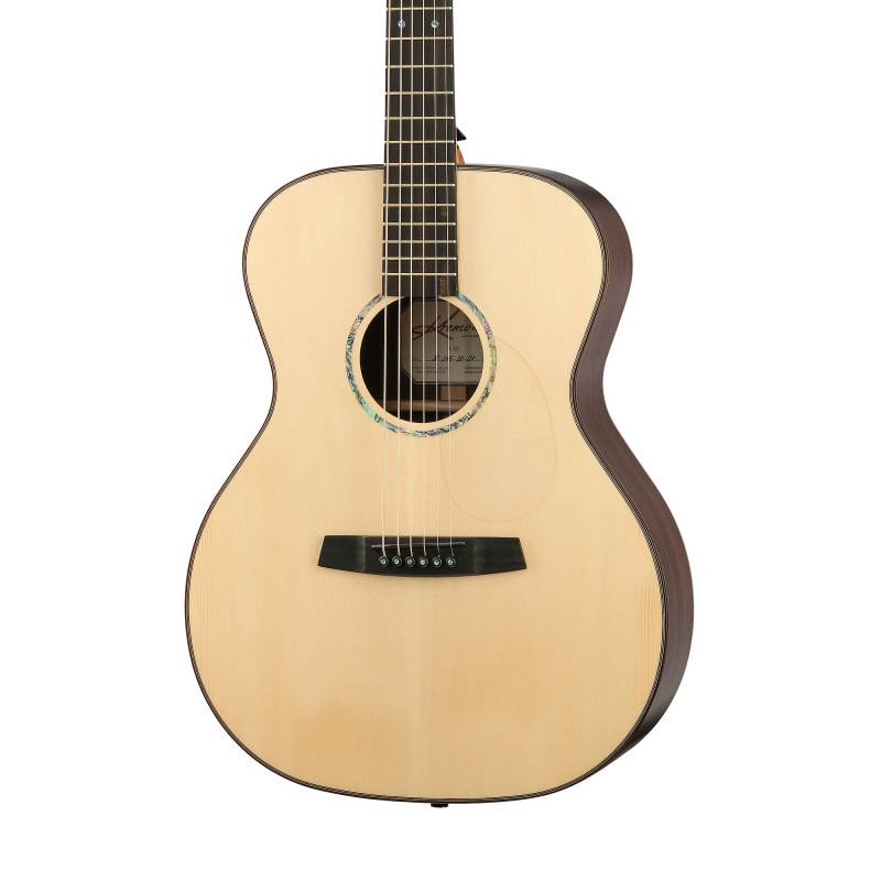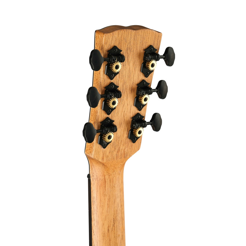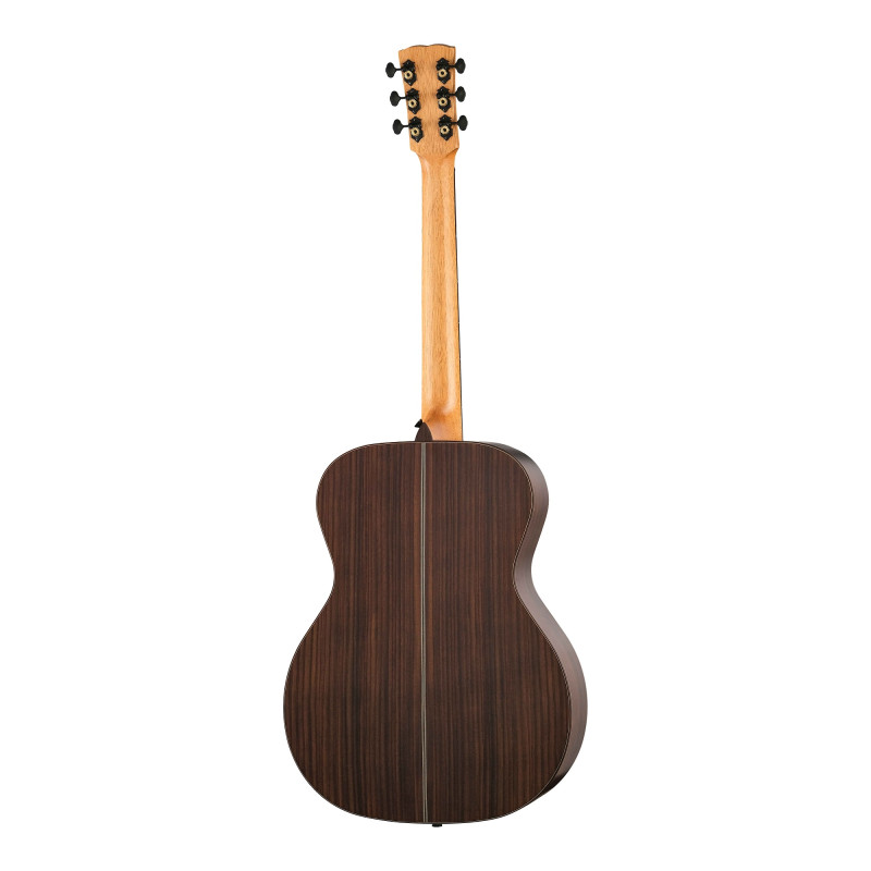 Играющие перебором точно оценят классический «союз» массива палисандра и плотного массива ели. Это сочетание усилено бриджем и накладкой грифа из черного дерева, предлагая баланс и артикуляцию новой флагманской модели R35 с оркестровым корпусом. Пружины из ели обеспечивают моментальный отклик, а гриф из красного дерева гарантирует стабильность. Метки ладов, розетка из перламутра и черная матовая колковая механика украшают эту современную классику.