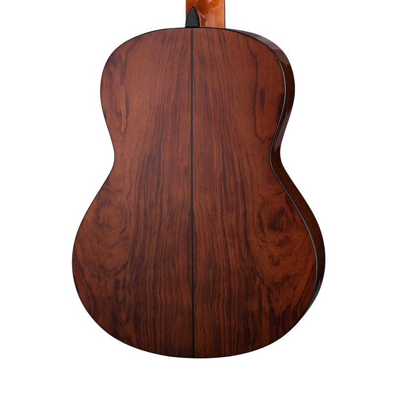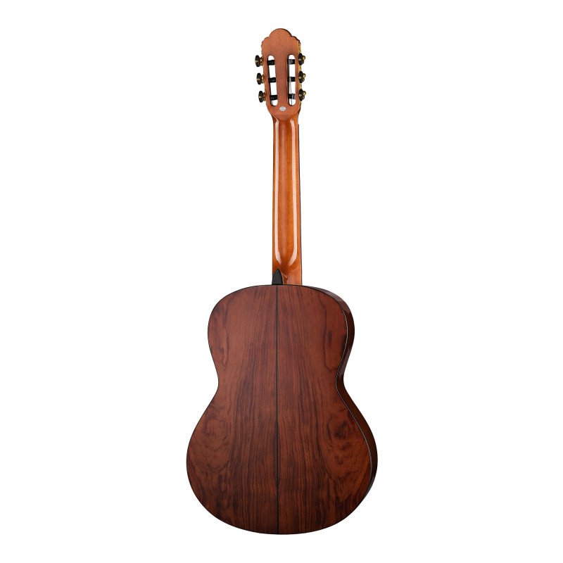 Размер: 39'' Верхняя дека: массив ели. Задняя дека и обечайка: бубинга. Накладка на граф и бридж: палисандр. Колки: позолоченные. Струны: Savarez.