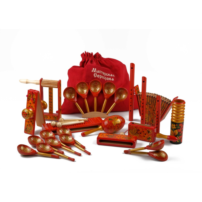 Комплект ''Скоморох'' рассчитан на средний и большой народный ансамбль. В этом наборе представлены все основные шумовые инструменты, разработанные в Мастерской Сереброва для профессиональных взрослых и детских народных коллективов. Обладатели такого комплекта наделены неограниченными возможностями в претворении в жизнь различных музыкально-фольклорных идей и замыслов.
