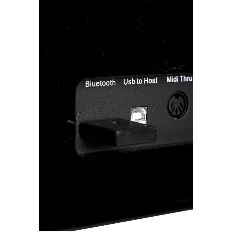 Подключения: Bluetooth,линейный выход L/R, линейный вход L/R, USB to Host, Midi In/Out/Thru, два гнезда педалей, питание.