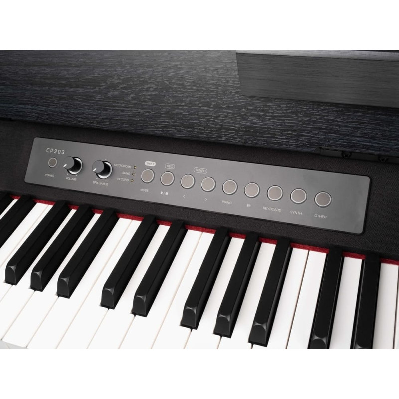 CP203 сочетает в себе весь опыт создания цифровых фортепиано Medeli в компактном корпусе, от флагманского звука немецкого рояля до 192-нотной полифонии, от совместимости с приложением PianoToolbox до всех параметров звука фортепиано, таких как шум молоточков или резонанс струн. Недавно разработанная компактная клавиатура с градуированным действием (GAC) предлагает полностью взвешенный молоточковый механизм в самом компактном размере. Кроме того, новый эксклюзивный звук японского рояля, тщательно записанные новые встроенные песни и новый педальный блок с поддержкой полудемпфирования — все это отражает эволюцию Medeli во всех направлениях.