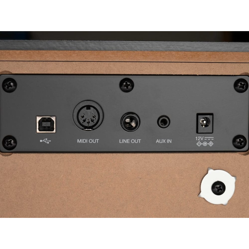 Входы / выходы: USB-B MIDI и аудио, MIDI-порт выход, наушники 1/4" и 1/8", вход 1/8", выход 1/4", педальный блок, сустейн, экспрессия.