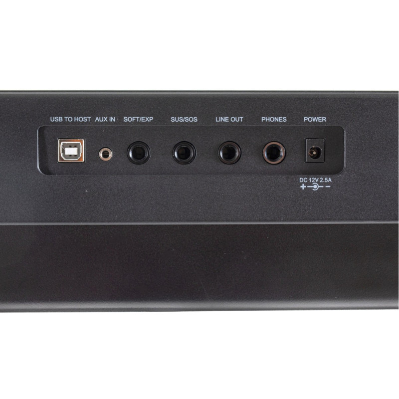 Органы управления непосредственно с инструмента – минималистичны, только самое необходимое, однако с подключением мобильного гаджета по беспроводной Bluetooth-связи открывается доступ ко всему функционалу. Также Bluetooth поддерживает двухстороннюю потоковую передачу как аудио, так и MIDI-сообщений. В дополнение к выбору и редактированию тембров и настроек эффектов, приложение предоставляет доступ метронома и постоянно расширяемой функции обучающей программы, которая предлагает ряд уроков, для тех, кто все еще хочет практиковаться. Кроме того, на борту имеется “виртуальный фортепианный техник”, обеспечивающий настройку таких параметров, как резонанс струны, резонанс педали, головка молоточка, атака, и прочие параметры настройки. Встроенный аудиоинтерфейс позволяет подключить инструмент к компьютеру для цифровой звукозаписи или интеграции в DAW. Предусмотрено питание как от адаптера, так и автономное, от батареек.