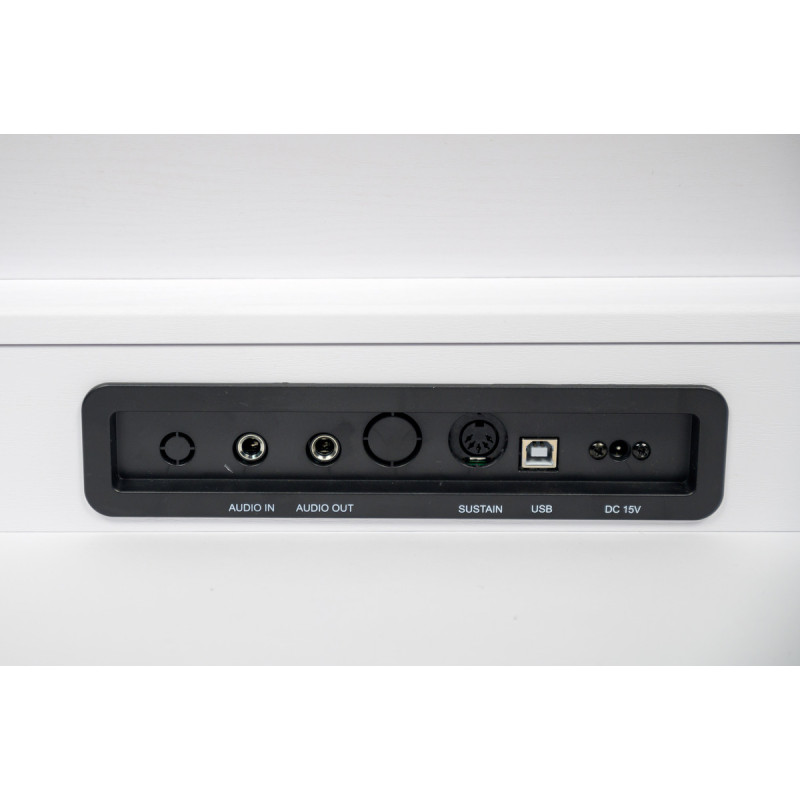 Фортепиано оснащено только самыми необходимыми – транспонирование, разделение клавиатуры для возможности занятий вместе с преподавателем в одной тональности и наложение двух тембров для творчества.