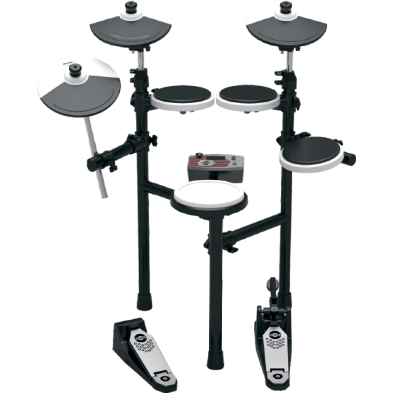 Пэды: малый барабан, тoм x 3, крэш, райд, хай-хэт, педаль хай-хэта, педаль с тригером бас-барабана и модуль управления (электроника).