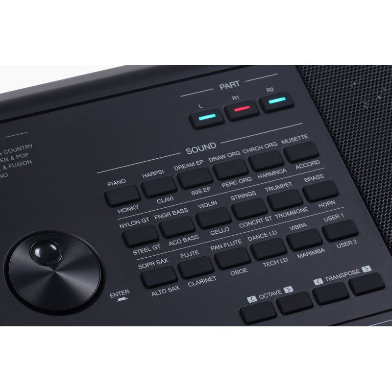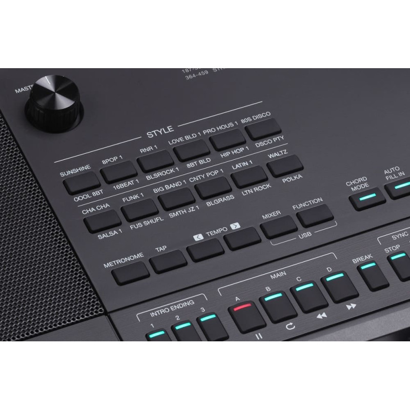 Управление Стилем: Старт / Стоп, Синхронизация начала / Синхронизация стоп, Вступление 1 / Концовка 1, Вступление 2 / Концовка 2, Вступление 3 / Концовка 3, Основная часть A / Вставка A, Основная часть B / Вставка B, Основная часть C / Вставка C, Основное D / Вставка D, Брейк, Автозаполнение, Аккорд вкл/выкл, Нарастание/затухание, Q.S.