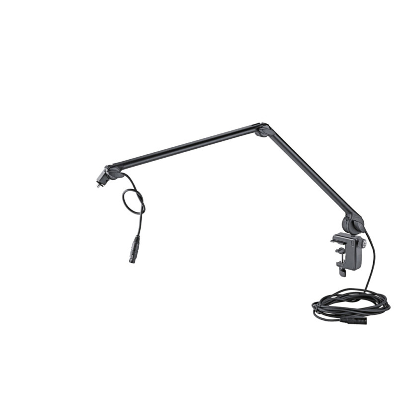 Эксклюзивная стойка для микрофона с резьбовым соединителем 3/8" или 5/8" в современном дизайне с новым инновационным настольным зажимом для быстрого и удобного позиционирования микрофона в студии или на мультимедийной рабочей станции.