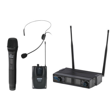 Беспроводная микрофонная система c 1 ручным и 1 поясным передатчиком с головным микрофоном.