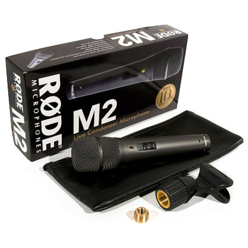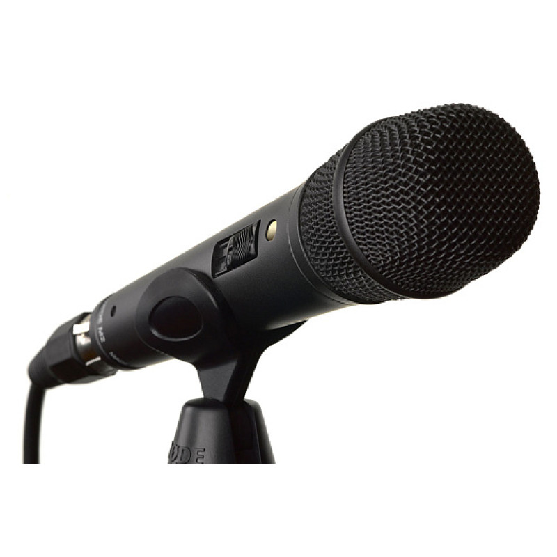RODE M2 конденсаторный суперкардиоидный микрофон с выключателем, частотный диапазон 30Гц-20 кГц., Макс SPL 141 дБ, 320 Ом, разъём XLR, полностью металлический корпус, повышенная защита от РЧ помех, вес 308г, цвет черный