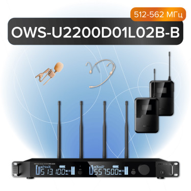 OWS-U2200D01L02В-B Двухканальная радиосистема, 1 головной, 1 петличный микрофон, 512-562МГц, Октава