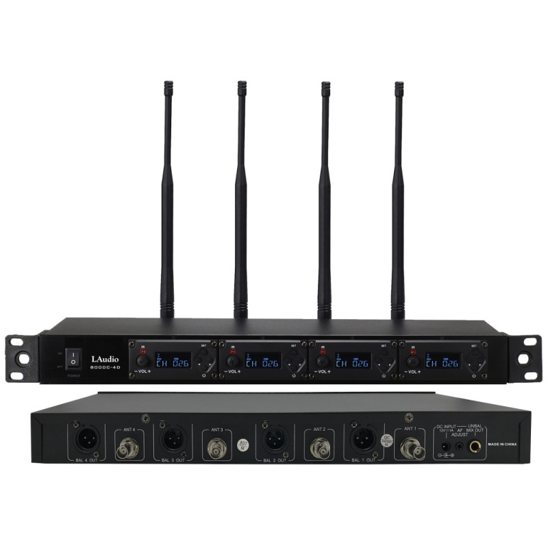 4-канальная беспроводная микрофонная система состоит из 4 наборов независимых модулей УВЧ-приемников с частотами 478-638 МГц.