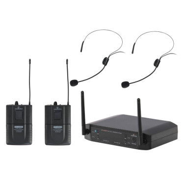 Беспроводная микрофонная система УВЧ с 2 поясными передатчиками с головными микрофонами.