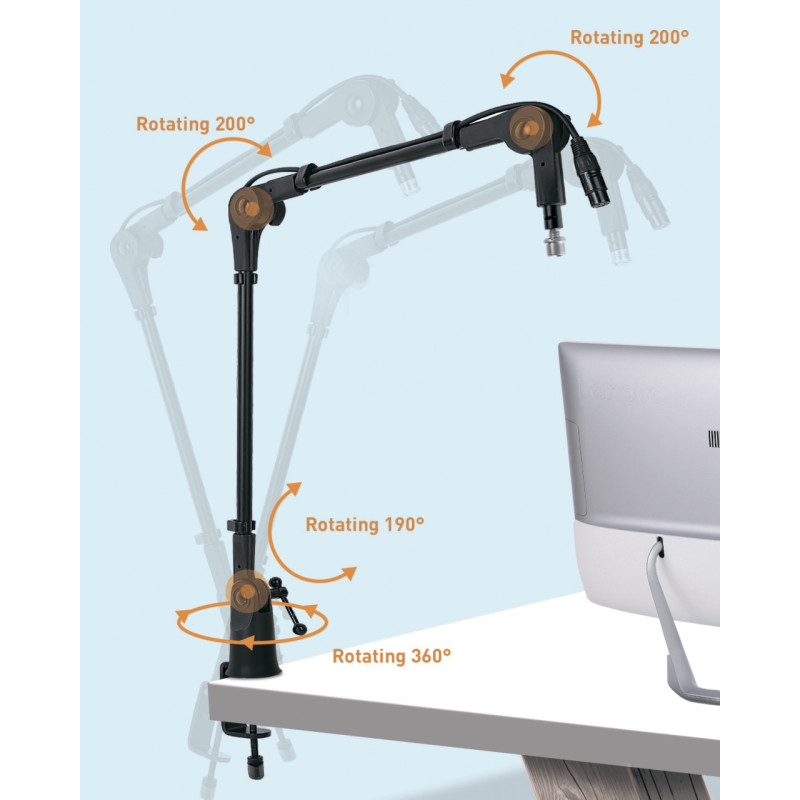 Подходит для большинства микрофонов, резьба 3/8" и переходник на 5/8".