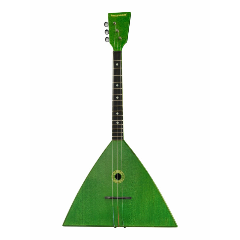 Балалайка традиционная компактная зелёного цвета. Необычная модель балалаек с формой корпуса типа «плоскодонка». БалалайкерЪ Звонкий Папоротник создан на базе модели БалалайкерЪ Фестиваль и выполнен в эффектной светло-зелёной отделке. Этот необычный лесной цвет наглядно напоминает о старинной музыкальной культуре, которая подобно реликтовым папоротниковым зарослям, способна сохраняться в условиях изменчивой природной и звуковой среды. Особенности этого инструмента состоят в компактности размеров, особом плоскодонном типе корпуса и тонированной отделке зелёного цвета. Благодаря этим качествам балалайка подходит для любительского музицирования, сценической работы и активного времяпрепровождения в дружеской компании.