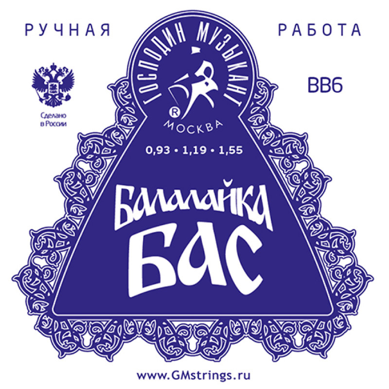BB6 Комплект струн для балалайки БАС, сталь/фосф. бронза, Господин Музыкант