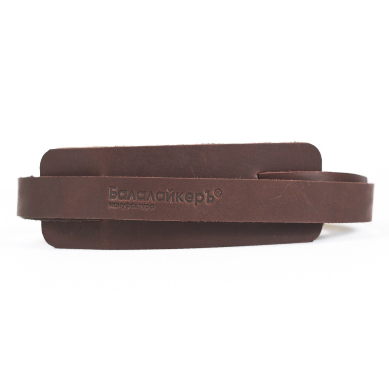 Удобное и стильное дополнение к фирменным инструментам БалалайкерЪ. Изготовлен из прочного износостойкого материала - натуральной кожи. Ремень предназначен для наплечного подвеса балалайки при игре стоя, во время движения и пляски. Внутренняя поверхность ремня имеет шероховатую поверхность - это помогает надёжно фиксировать инструмент и препятствует его соскальзыванию. Ремень подходит для подвеса различных акустических инструментов фольклорного типа (мандолина, бузуки, укулеле и др.).