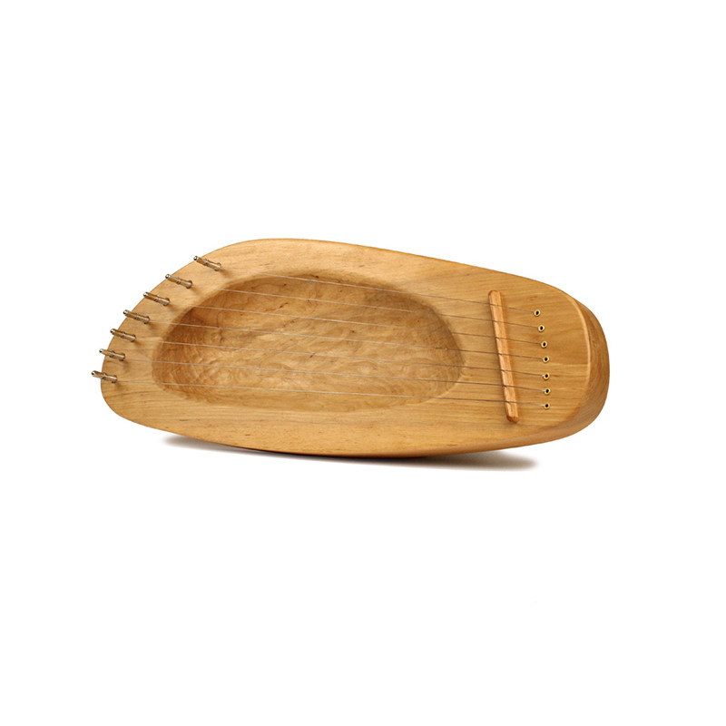 Лира пентатоническая 7 струн. Лира долблёная с двух сторон из массива клёна, бука, дуба, одьхи и других твёрдых пород древесины. В результате долбления формируется тонкая внутренняя дека инструмента, расположенная под углом к струнам. Такая конструкция лиры обеспечивает высокие акустические параметры и надёжность.