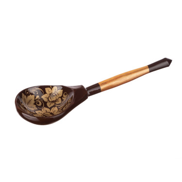 LHL7101 Деревянная ложка полубаская, роспись "Золото", Хохлома