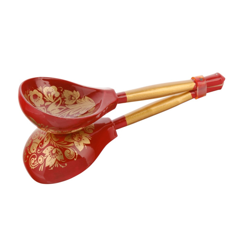 Цветовая гамма хохломских ложек: золотые, красные, черные.