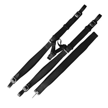 РБк4/4-1.1 Комплект ученических ремней для баяна, аккоредона. Два заплечных ремня - длина: min 45см, max 70см (рабочая = 80см). Натуральная кожа, подушки обшиты тканью с перемычкой. Левый ремень из натуральной кожи с винтом (длина 56см; ширина ремня 3,5см, подушки 4см) АМС