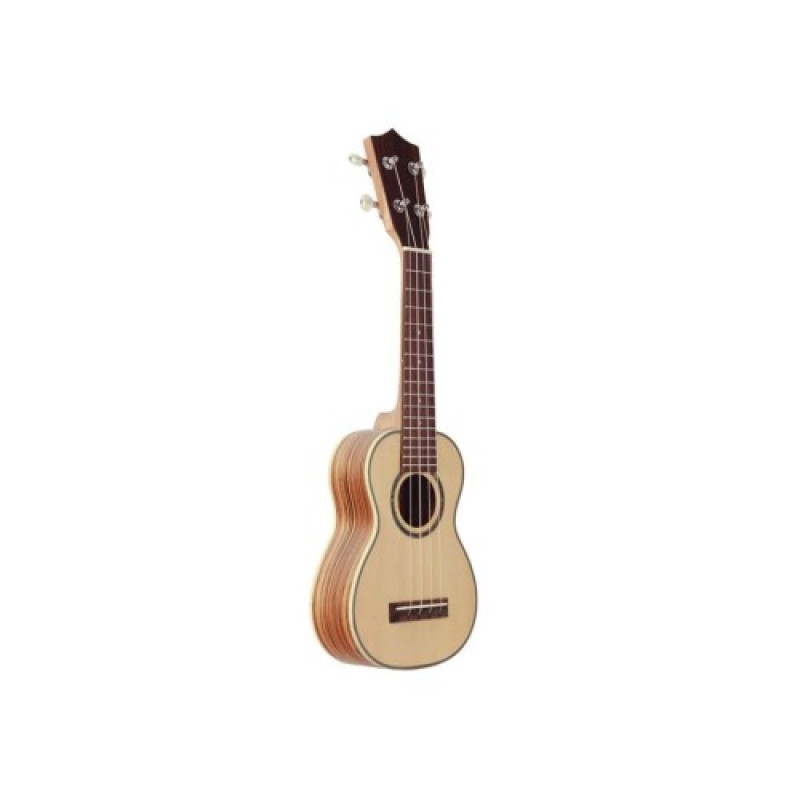 Укулеле Prima M320S имеет классическую форму корпуса, и размер сопрано. Нижняя дека и обечайки укулеле сделаны из дерева зебрано (zebrawood). Это дерево дает очень хороший сустейн, яркие и открытой верхней частоты, ярко выраженную середину и плотный, но немного приглушенный бас. А топ из ели, придает звучанию теплый тембр.