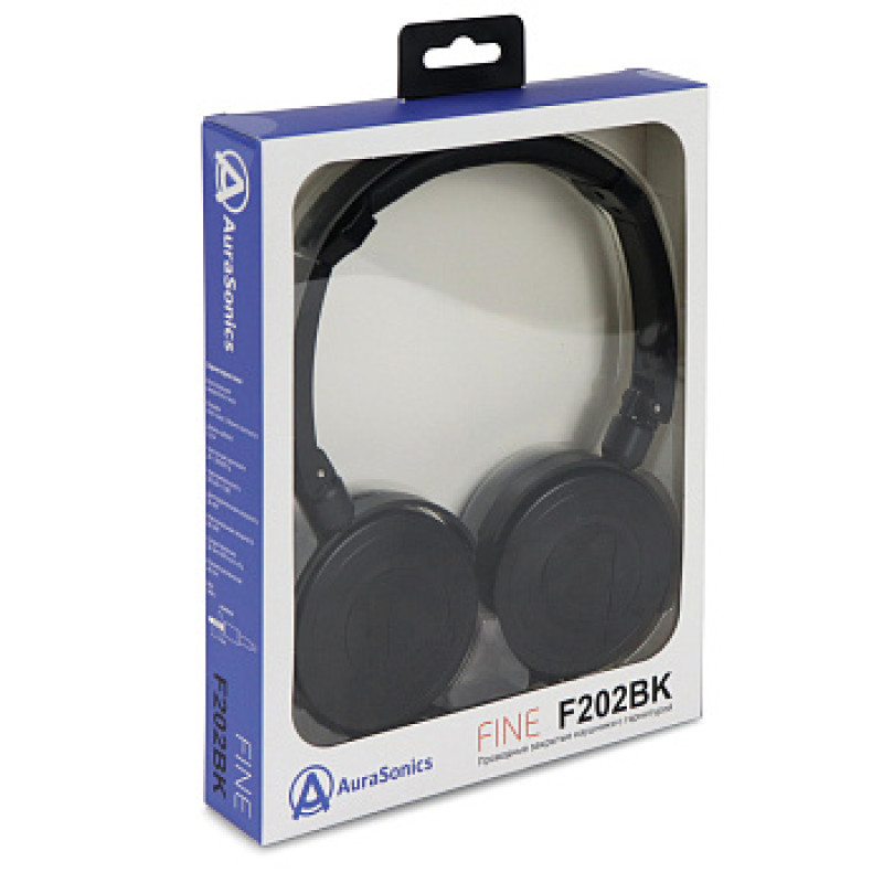 AuraSonics FINE F202BK наушники проводные, складные, закрытые с микрофоном, чёрный цвет