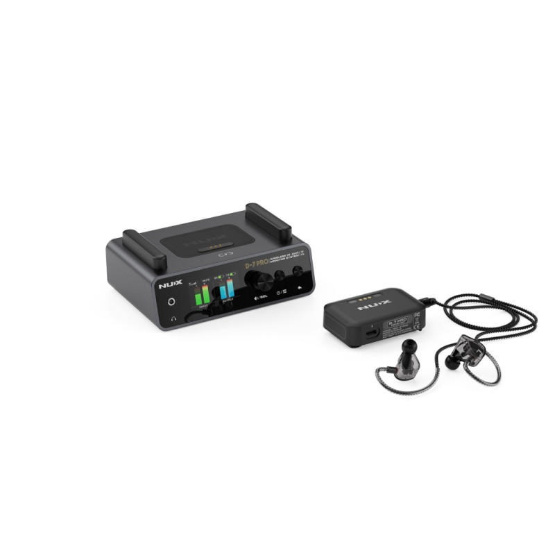 NUX B-7 PRO — это персональная беспроводная система ушного мониторинга с автоматической настройкой, частотой вещания без помех 2,4 ГГц и высококачественным стереозвуком 24 бит 48 кГц. Радиус действия составляет до 50 метров (160 футов) с очень низкой задержкой передачи данных.
