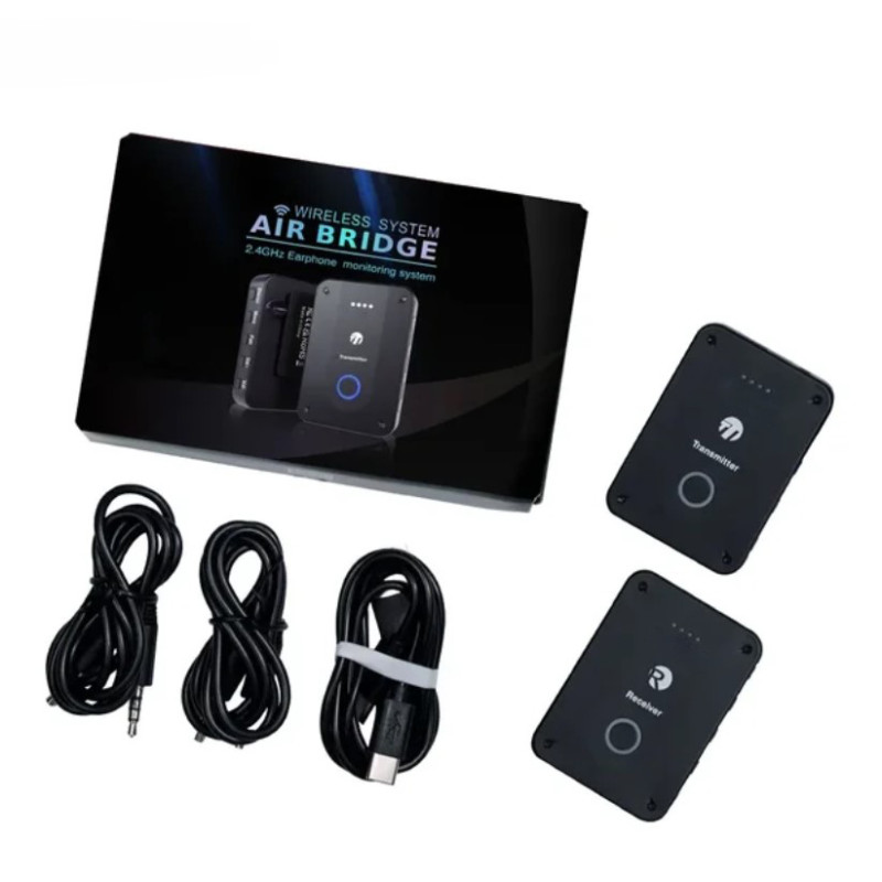 Аксессуары в комплекте: передатчик x1, приёмник, USB-кабель для зарядки x1, аудиокабель x2