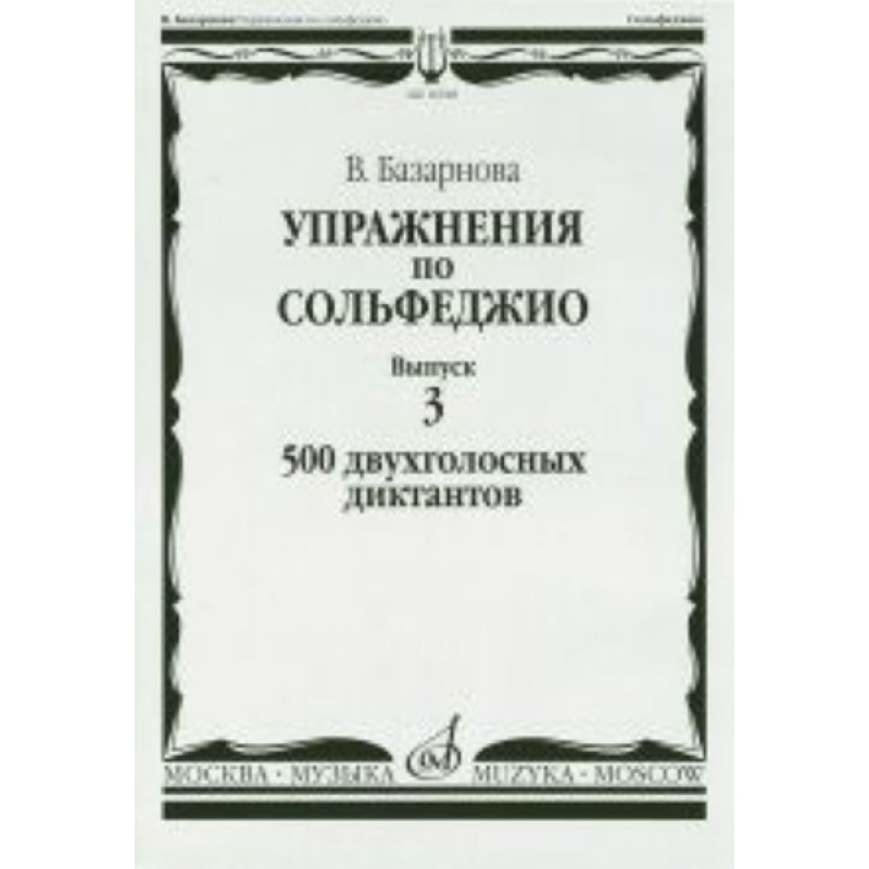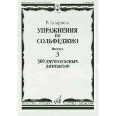 16928МИ Базарнова В. Упражнения по сольфеджио. Вып.3. 500 двухголосных диктантов, Издательство "Музыка"